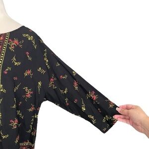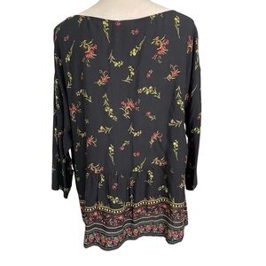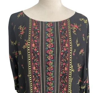 J. Jill Floral Boho Tunic Top Black Peasant Style Tiered Long Sleeve Blouse LP