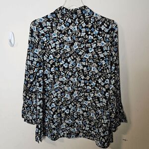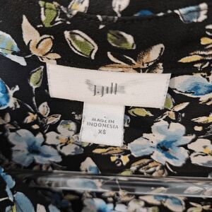 J. Jill Floral Long Sleeve Button Up Boho Shirt Women's Black/Blue Size XS