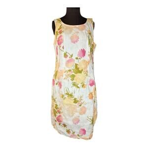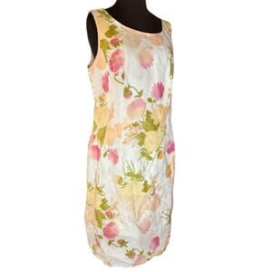 J Jill Floral Linen Watercolor Feminine Sheath Dress 12 Petite Ladylike Resort