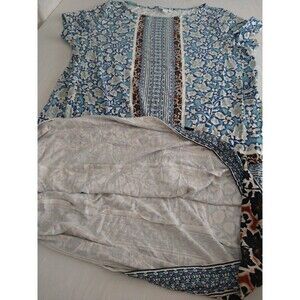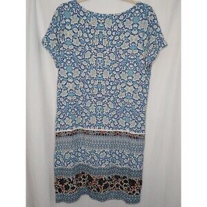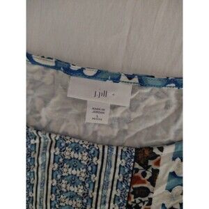 J Jill Floral Mix Print Short Sleeve Dress Size Petite Large Blue shift sheath