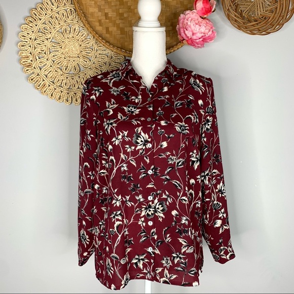 Excellent pre-owned condition, you might even mistake it as new. 100% polyester material regular length button front long sleeve unlined. Basic everyday casual lightweight all seasons wear. Work professional career office zoom call or business wear. Boho bohemian trendy blogger. Dressy date night party. Approximate Measurements with product laying flat / Length: 26 in / Pit to Pit: 20 in / L032-9z