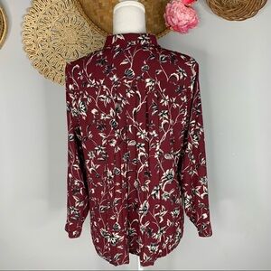 J. Jill Floral Pleated Back Shirt Women's Size PS Petite Collared Flowy Blouse Multicolor