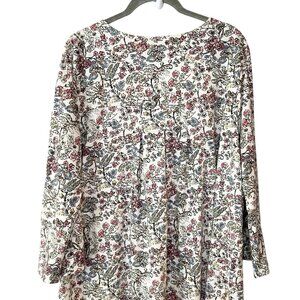 J. Jill Floral Print Ivory Cotton Modal Rayon Soft Knit Stretch Tunic Top Size L