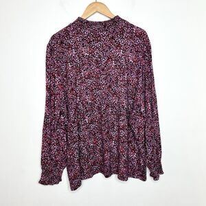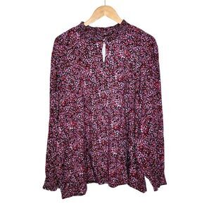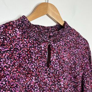 J. Jill Floral Print Long Sleeve High Neck Blouse Knit Top Pink Purple
