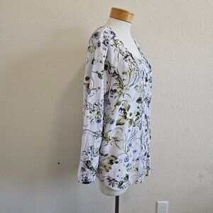 J Jill Floral Silk Blend Lightweight Scoop Neck Pintucked Button Front Blouse XL