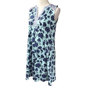 J Jill Floral Sleeveless Aqua Blue V Neck Dress Women’s Size Small Petite NEW