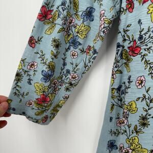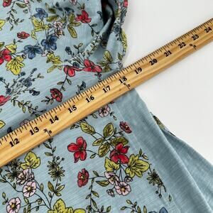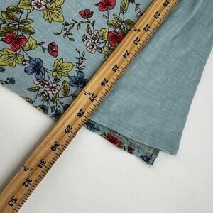 J. Jill Floral Top Blue Cotton Panel Asymmetrical Boat Neck Size S