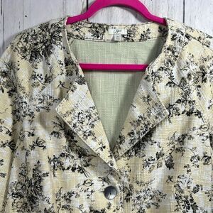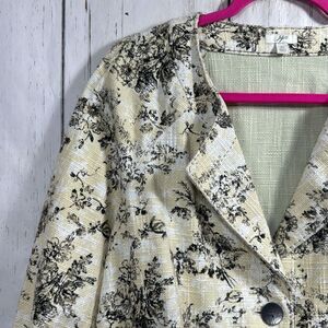 J Jill Floral Button Up Pockets Cream Cotton Long Sleeve Career Blazer Jacket