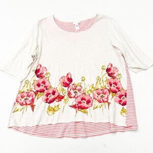 J. Jill Flower Printed Striped Back Graphic Tunic Top Size XL