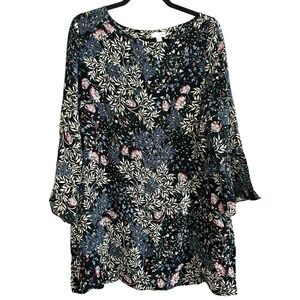 J. Jill Flowy Floral Pullover Tunic Top Shirt Blouse Loose - Large