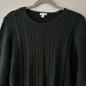 J. Jill Forest Green Cable Knit Sweater Tunic Size Medium Cotton Wool Blend EUC
