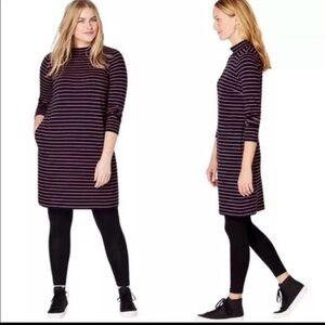 J. Jill French Terry Striped Mock Neck Shift Dress With Pockets Small