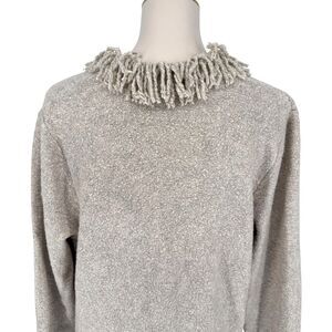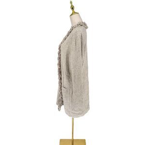 J. Jill Fringe Trim Cardigan Sweater Size Medium TALL Long Pockets Flax Heather