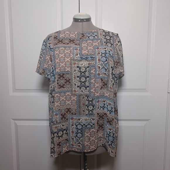 J Jill Geometric Patchwork Pattern Top