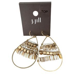 J. Jill earrings, J. Jill jewelry, J. Jill drop earrings, J. Jill dangle earrings, J. Jill teardrop earrings, J. Jill beaded earrings, gold tone earrings, gold drop earrings, gold dangle earrings, gold teardrop earrings, ethnic, indian, wired, gold beaded earrings, neutral earrings, cream earrings, white earrings, boho earrings, bohemian earrings, boho chic earrings, statement earrings, fashion earrings, bead earrings, seed bead earrings, disc bead earrings, faceted bead earrings, lightweight earrings, hoop drop earrings, artisan style earrings, casual earrings, dressy earrings, everyday earrings, womens earrings, trendy earrings