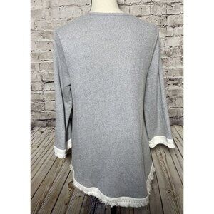 J Jill Gray 3/4 Sleeeve Shirt Fringe Edge Women’s S Casual Neutral