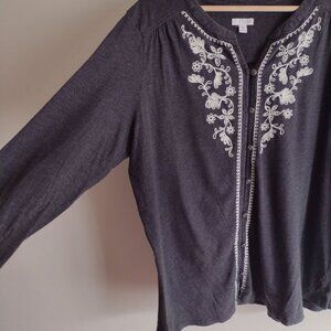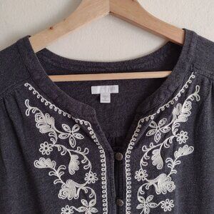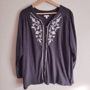 J Jill Gray Embroidered Top 2X Soft Cotton Blend Knit Relaxed Fit Blouse
