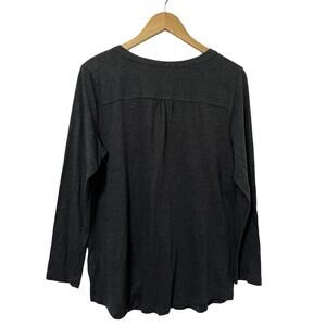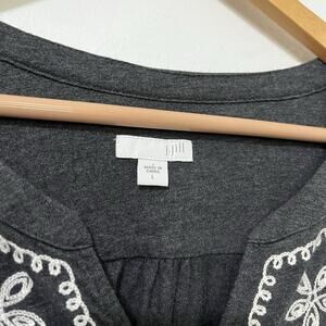 J Jill Gray Floral Embroidered Button Shirt Size L Charcoal Gray Boho Peasant