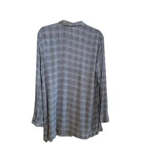 J Jill Gray Plaid Semi Sheer Tunic Shirt Top w Front Pin Tucks L
