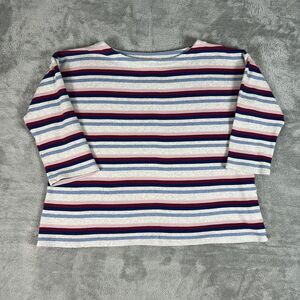 J Jill Gray‎ Ribbed Striped 3/4 Sleeve Boatneck Sweater Size Large