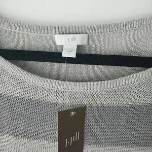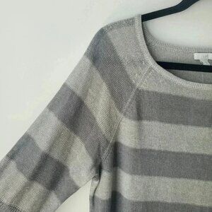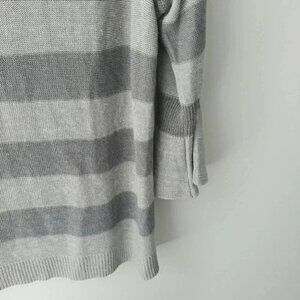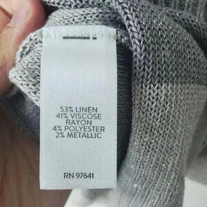 J Jill Gray Striped Metallic Sparkle Bell Sleeve Linen Blend Sweater Sz …