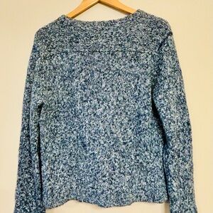 Cozy knit sweater. Features a stylish zipper. Perfect for layering.