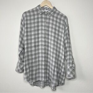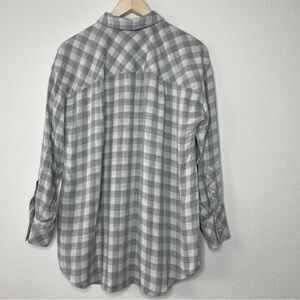 J. Jill Gray and White Checkered Plaid Button Down Shirt