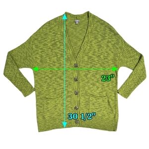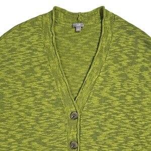 J. Jill Green Apple V-Neck Button-Up Cardigan Drop Shoulders Textured Slouchy
