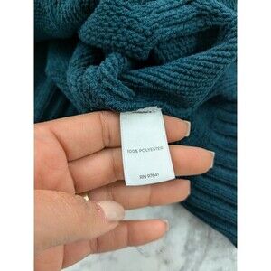 This J. Jill sweater in green is a must-have for any wardrobe. The cable-knit pattern and 3D chain accents add a bohemian touch to this classic and preppy pullover. The oversized sweater, made of polyester knit fabric, features a crew neck and long dolman sleeves, making it perfect for any occasion. The sweater is a size medium and comes in a solid color that will match any outfit. Add this stylish sweater to your collection today!