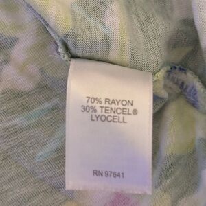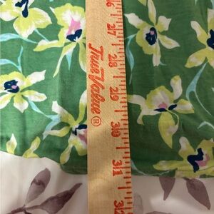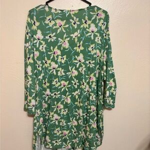 Elegant green blouse with floral pattern. Features a V-neck and three-quarter sleeves. Perfect for casual wear.