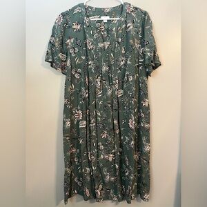 J. Jill Green Flutter-Sleeved Pintucked Dress Size M