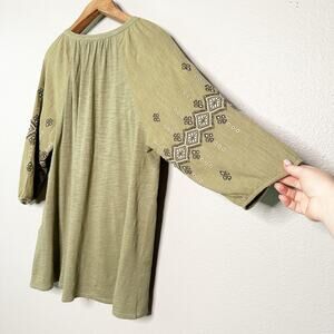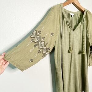 J. Jill Women's Green Mixed Media Embroidered Boho Peasant Tassel