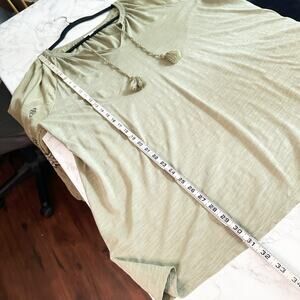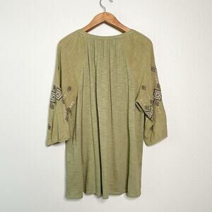 J. Jill Green Mixed Media Embroidered Boho Peasant Tassel Tunic Top women’s 1X