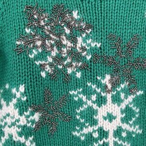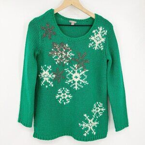 J. Jill Green Mohair Wool Blend Sweater Snowflake Embellishments Size XS