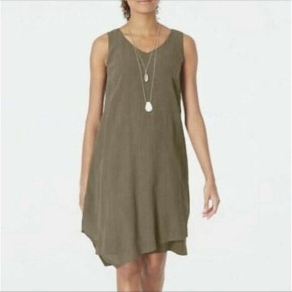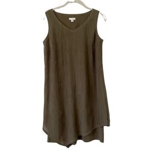 J. Jill Green Pure Jill Olive Asymmetrical Hem Crinkle Dress Lagenlook XS