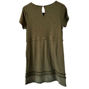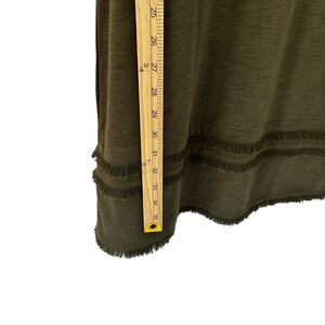 J. Jill Green Short Sleeve Scoop Neck Stretchy Fringe Midi Dress Pockets Size SP