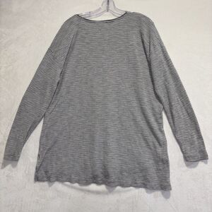 J. Jill Grey White Striped Knit Long Sleeve Scoop Neck Waffle Top Size XL