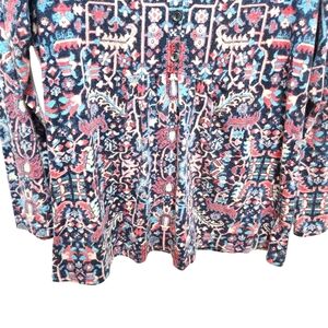J. Jill Henley Style Popover Babydoll Hem Top Size S Petite Abstract Geo Floral