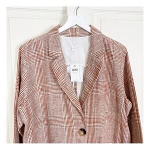 new with tags henna plaid linen blend boyfriend blazer from J. Jill. two button closure, patch pockets. 53% linen 47% cotton.