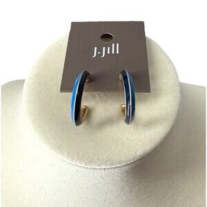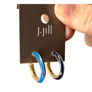J. Jill, J Jill, hoop earrings, hoops, enamel earrings, enamel hoop earrings, gold tone earrings, goldtone earrings, blue earrings, navy earrings, light blue earrings, two tone blue earrings, fashion earrings, womens earrings, ladies earrings, jewelry, costume jewelry, statement earrings, modern earrings, classic earrings, chic earrings, lightweight earrings, small hoop earrings, medium hoop earrings, round hoop earrings, post back earrings, stud hoop earrings, everyday earrings, casual earrings, dressy earrings, versatile earrings, trendy earrings, stylish earrings, gift for her, accessory, womens fashion jewelry