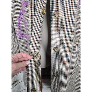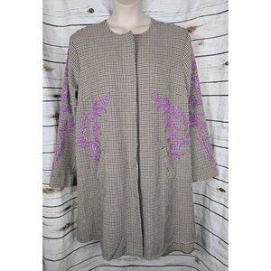 J Jill Houndstooth Purple Floral Embroidered Jacket 2X Long Womens Snap Front