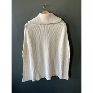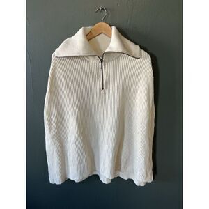 J Jill Ivory Cream S-L Ribbed Poncho Sweater Cape 1/4 Zip Classic Preppy Fall