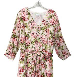 J. Jill Ivory Pebble Hydrangea Floral Printed Belted Waist Rayon Midi Dress Women’s Size 2X