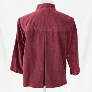 J Jill Jacket Womens Medium Burgundy Velvet Blazer Mock Neck Back Pleat Pockets
