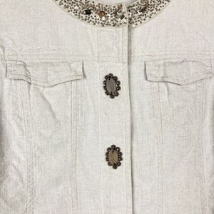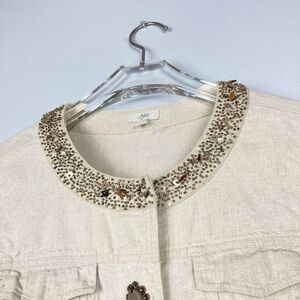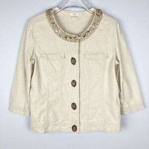 J Jill Jacket XS Petite Linen Cotton Blend Beaded 3/4 Sleeve Snap Front