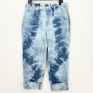 J Jill Jeans Womens 16 High Rise Cropped Tie Dye Island Wash Blue Stretch Denim Cuffed NEW. Cuffs Are Sewn. Beach Vacation Comfort Hippie Boho