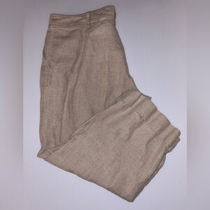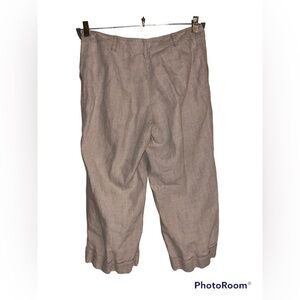 J. Jill Khaki 100% Linen Crop/Capri Pants with Fixed Cuff - Size 10P - Pockets
