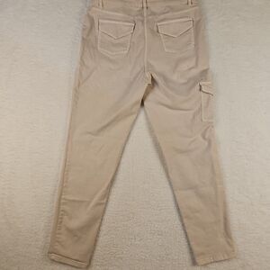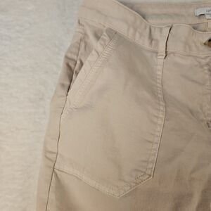 Elevate your wardrobe with these versatile J. Jill khaki pants, perfect for any occasion. Made with a comfortable cotton blend and spandex material, these pants feature a mid-rise and flat front with a straight leg style that flatters any body type. The beige color is neutral and can be paired with any top, while the button and zip closure ensures a secure fit.