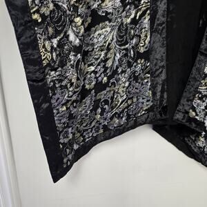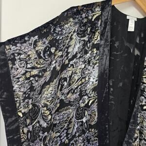 J Jill black with paisley burnout velvet, open front kimono ruana, metallic shimmer
