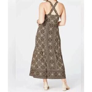 J Jill Kona St Cross Back Brown Floral Midi Dress Boho Preppy NEW Womens Large